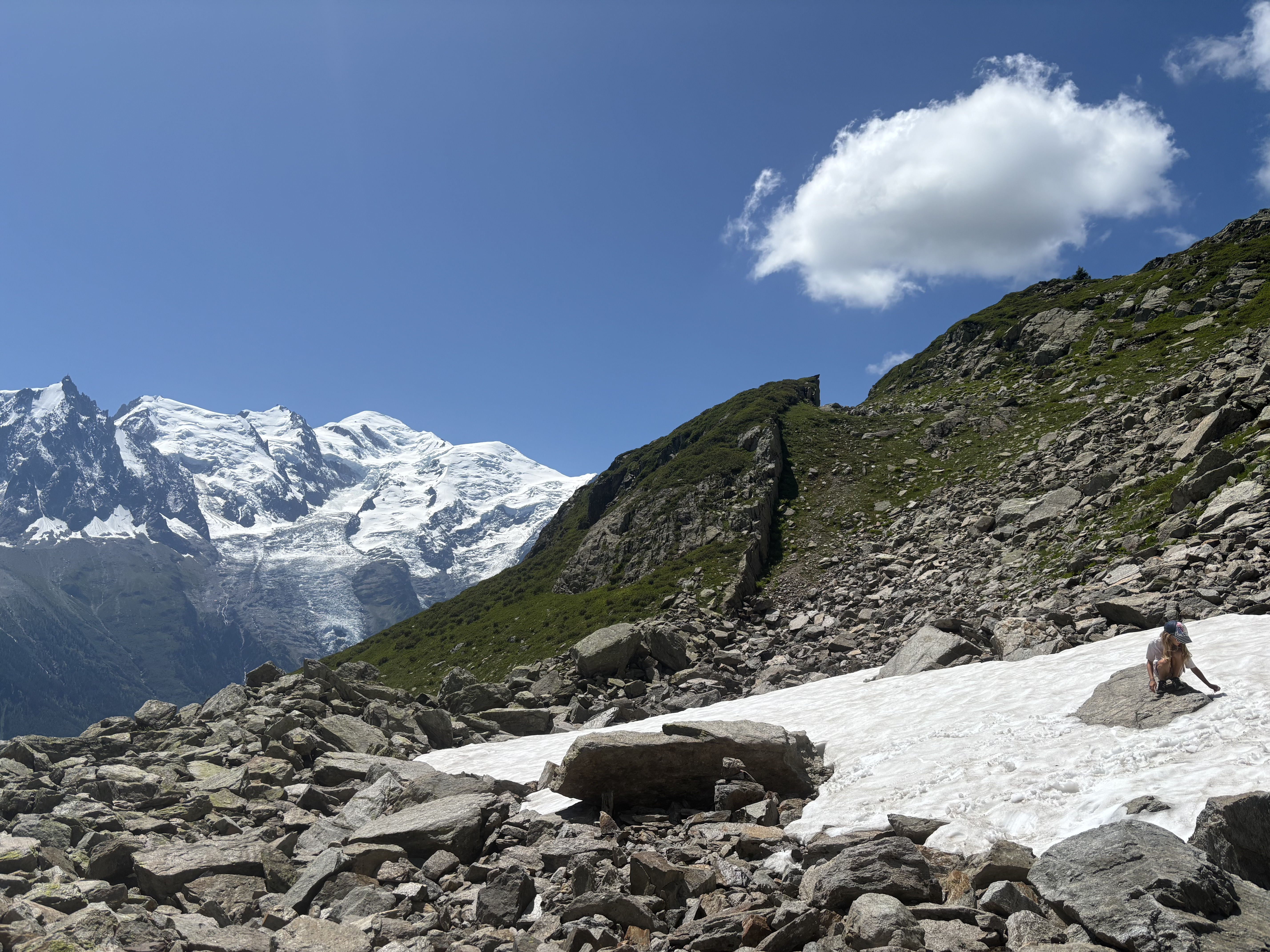 Le Col Cornu, depuis le haut des oeufs de Planpraz à Chamonix Mont Blanc, une belle balade dans les Aiguilles rouges. Du col, on apercoit le lac Cornu, les Fiz, d'un côté, le massif du Mont Blanc de l'autre. 400m de denivelé et 9km aller-retour environ.